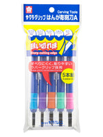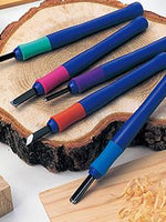 A set of 5 carving chisels with rubber handle for a non-slippery comfortable grip.