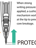 · The cushion mechanism absorbs excess pressure and avoids lead breakage